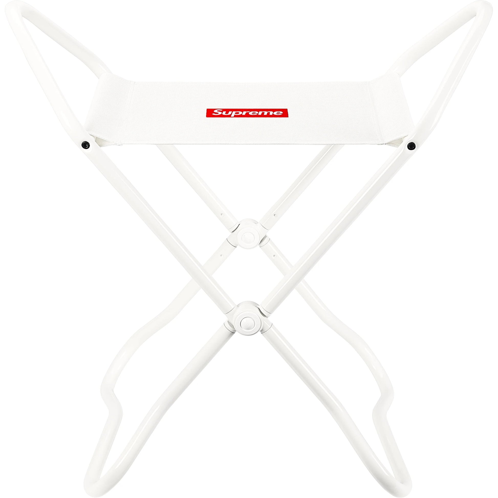 - Durable folding stool with custom logo application.